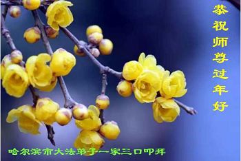 黑龙江省哈尔滨市大法弟子一家三口恭祝师尊过年好!