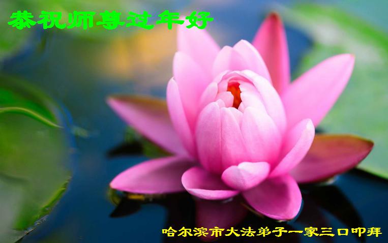 黑龙江省哈尔滨市大法弟子一家三口恭祝慈悲伟大的师尊过年好!