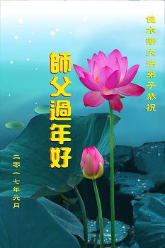 二零一七年到来之际,我要更加努力做好三件事,讲好真相多救人,时刻不忘记修好自己,去除各种人心与执着,珍惜师父用巨大的承受延续来的时间。我们弟子碰到了这难遇的万古机缘,兑现来世的誓约,回报师尊救度之恩! 吉林省辽源大法弟子恭祝师尊过年好!