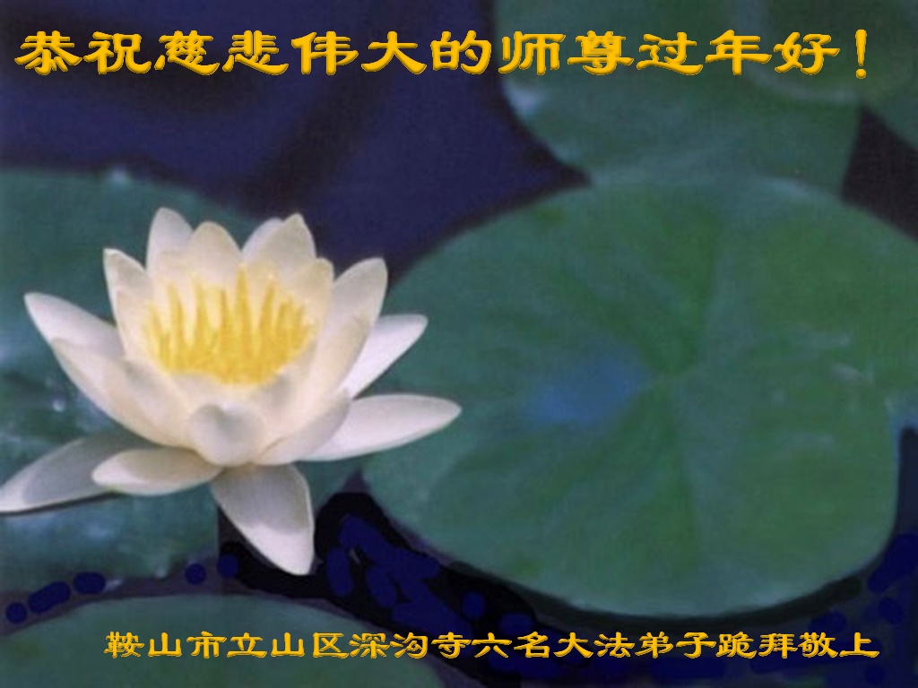 弟子无法用语言表达此时激动的心情,感谢师父给我们开创证实法,救度众生的机会。在新的一年里我们一定加倍努力做好三件事,不辜负师父的慈悲救度与等待。 辽宁省鞍山市立山区深沟寺六名大法弟子恭祝慈悲伟大的师尊过年好!