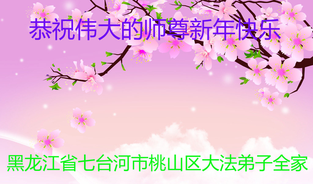 黑龙江省七台河市桃山区大法弟子全家恭祝师尊新年好!