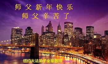 用尽世间的语言也无法表达弟子对师尊的无限感激!在修炼的路上,弟子一路走来,师尊对弟子始终不离不弃。师尊的洪恩浩荡,弟子无以回报。弟子在此发誓,在不多的时间里,做好三件事,修好自己,多救人,不负师恩! 纽约青年大法弟子恭祝师尊过年好!