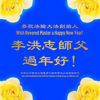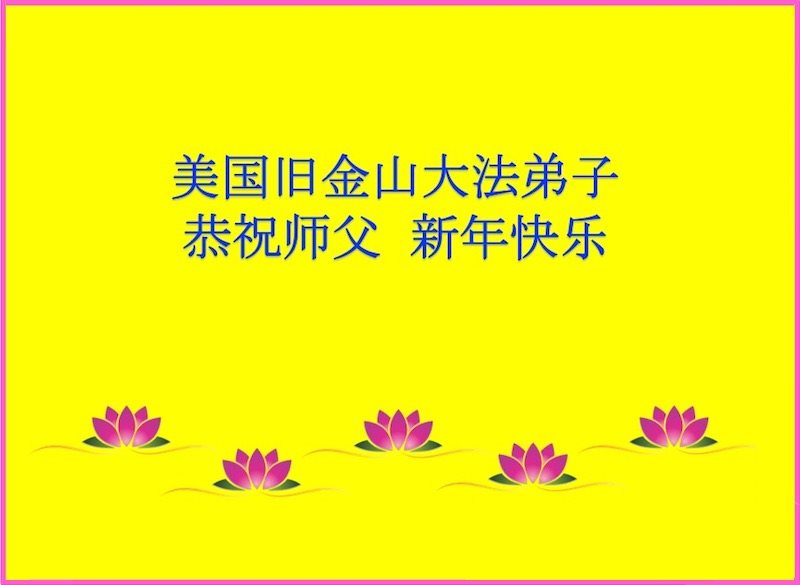旧金山大法弟子恭祝师父新年快乐!在新的一年里,我们会好好学法,多救众生! 美国加州旧金山湾区南旧金山学法小组大法弟子恭祝师父过年好!敬谢师恩!