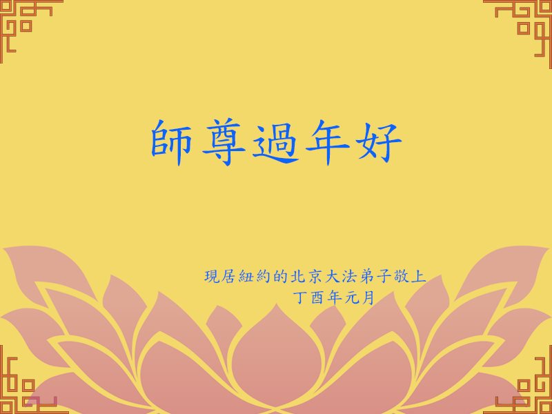 现居纽约的北京大法弟子恭祝师尊过年好!