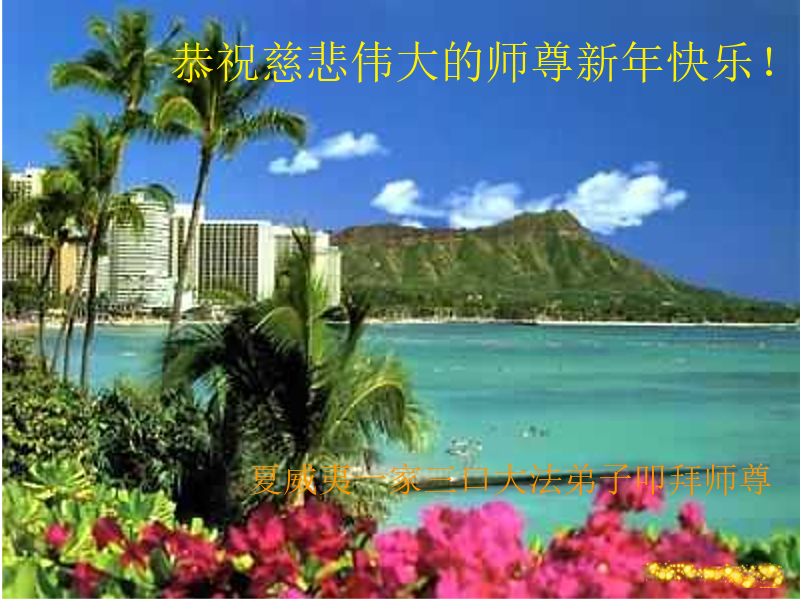 夏威夷檀香山一梁姓大法弟子恭祝师父新年好!恭祝慈悲伟大的师父新年快乐!