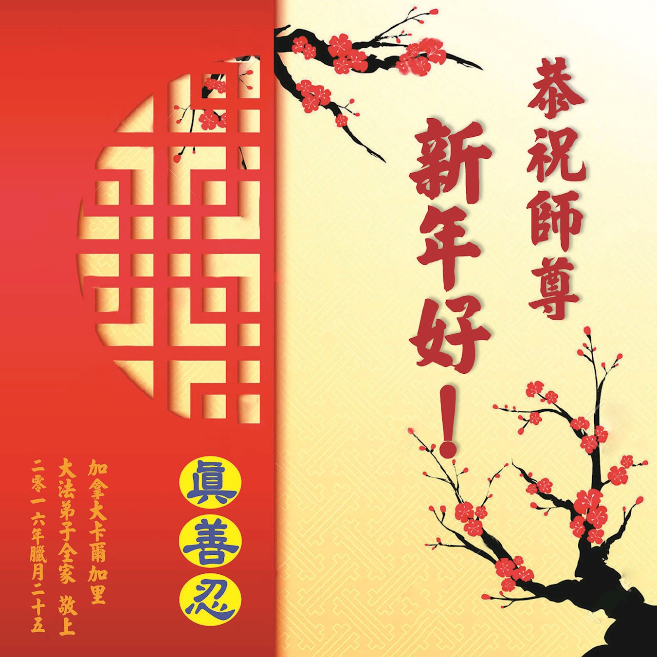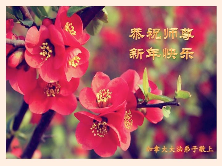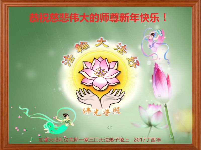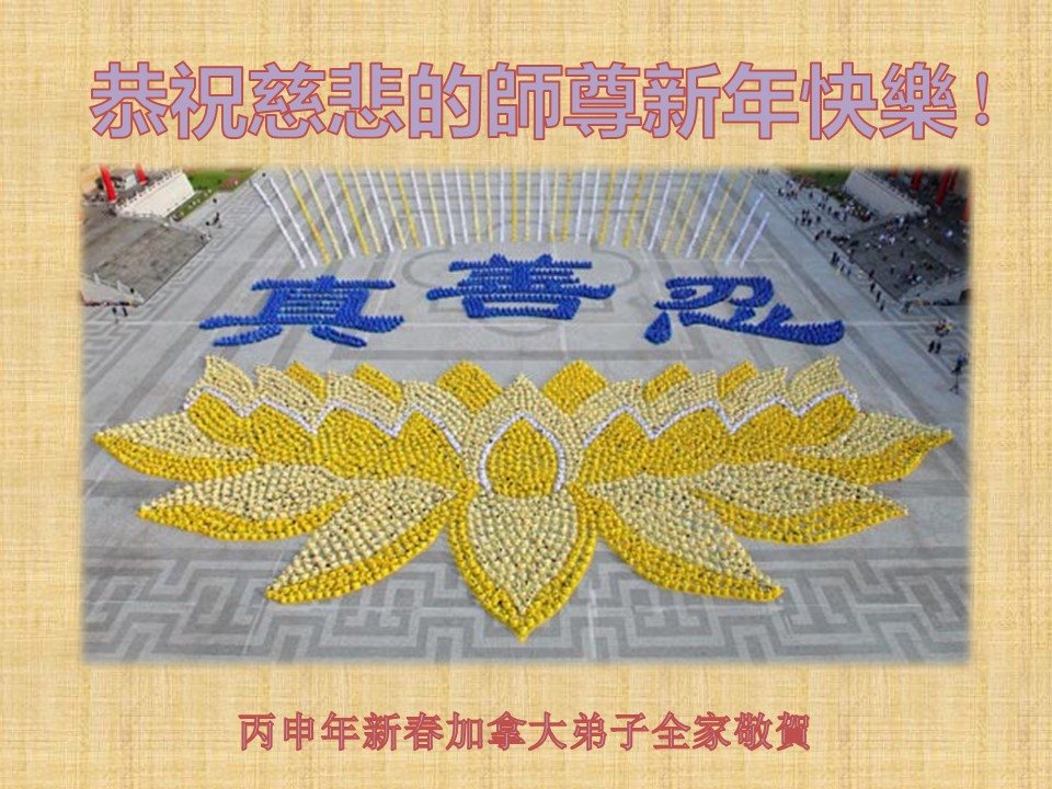 加拿大大法弟子全家恭祝尊敬的师尊丙申年新年快乐!