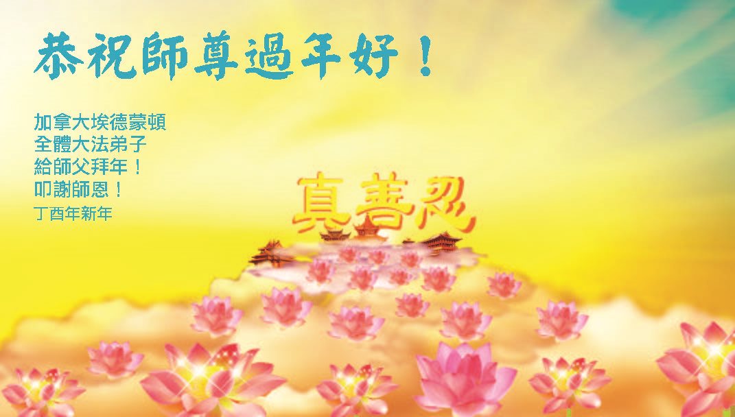 加拿大萨斯卡通全体大法弟子恭祝慈悲伟大的师尊新年好! 加拿大埃德蒙顿大法弟子恭祝师尊新年好! 加拿大维多利亚全体大法弟子恭祝慈悲伟大的师尊新年好! 加拿大埃德蒙顿全体大法弟子给师父拜年!