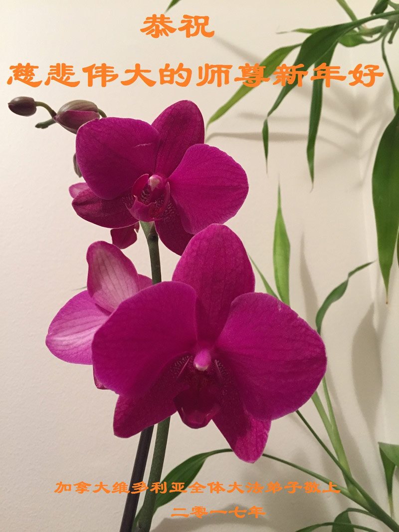 轮回辗转陷泥潭,幸遇师尊把法传, 同化真法去人心,朵朵净莲随师还。 加拿大大法弟子恭祝师父新年快乐!