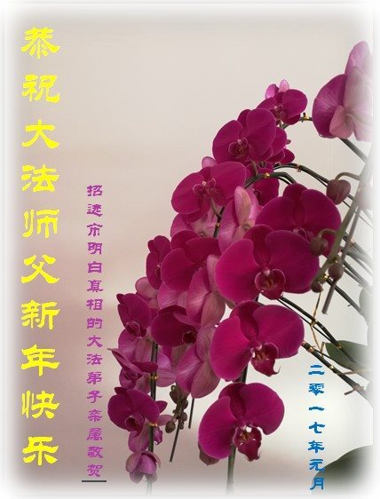 在此代替一位明白真相的北京市民向李老师问候,祝李老师新春快乐! 这位普通市民多次说,代他向李大师问好。 河北蔚县大法弟子子女恭祝师父新年快乐!