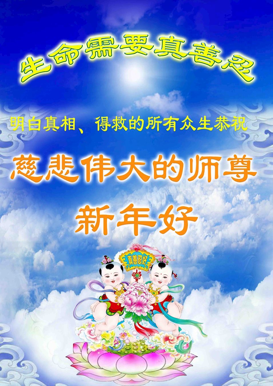 伟大慈悲的师父过年好!感谢师父对我的学习的慈悲加持,感恩师尊的慈悲呵护。谨代表姐姐,姐夫,爸爸及其他家属恭祝师尊新年快乐! 合十。 河北蔚县大法弟子子女 依兰明真相的众生恭祝师尊新年好!