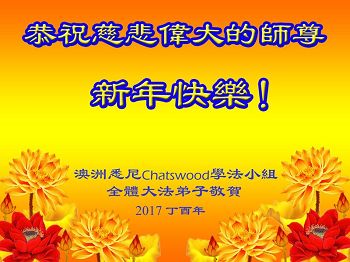 澳洲悉尼Chatswood学法小组全体大法弟子恭祝慈悲伟大的师父新年快乐!