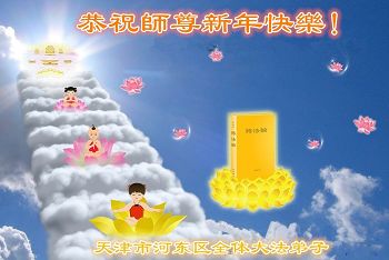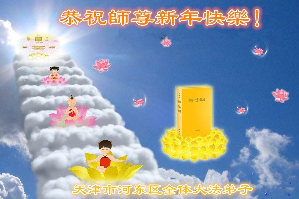 恭祝师父新年好!跪拜师父。 今后要更加精進做好三件事,修好自己,助师正法,惟愿师尊笑 天津市河东区全体大法弟子恭祝师尊新年快乐!
