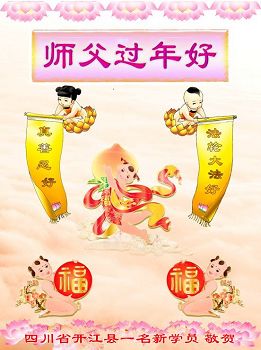 黑龙江省勃利县新得法的弟子全家叩拜 四川省达州市开江县一名新学员恭祝师父过年好!
