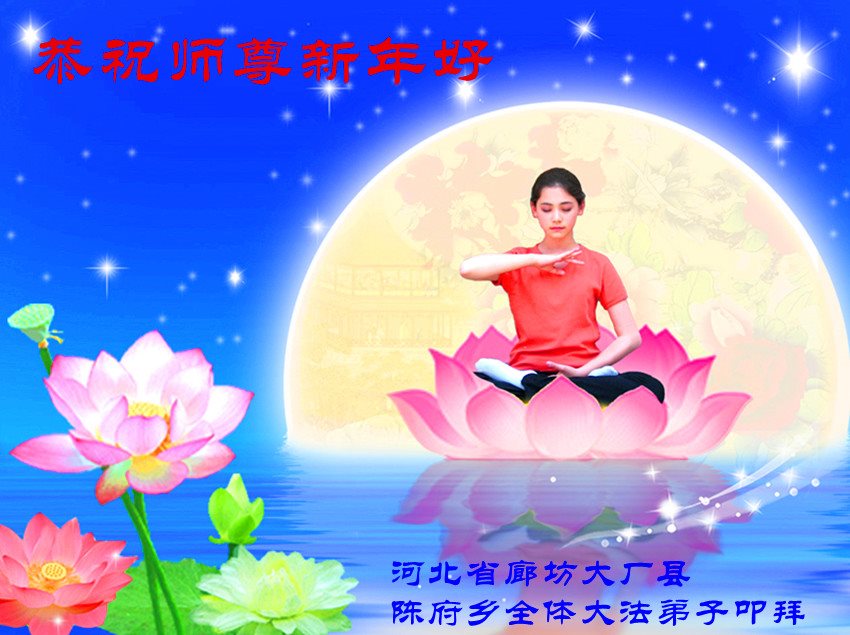 河北省廊坊大厂县陈府乡全体大法弟子恭祝师尊新年好!