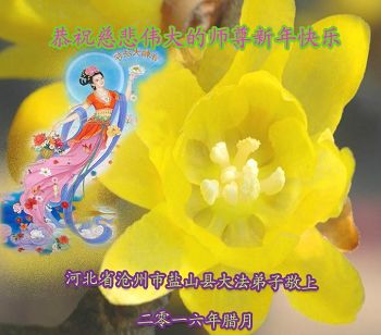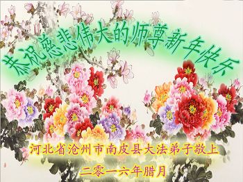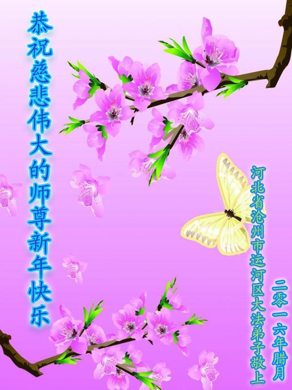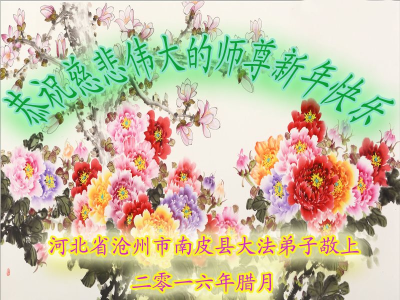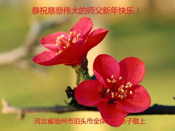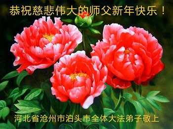 在新的一年里,弟子一定要多学法,用心学好法,修好自己,多救人,让师父放心! 河北省沧州市泊头市全体大法弟子恭祝慈悲伟大的师父新年快乐!