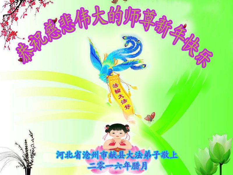 河北省沧州市献县大法弟子恭祝慈悲伟大的师尊新年快乐!