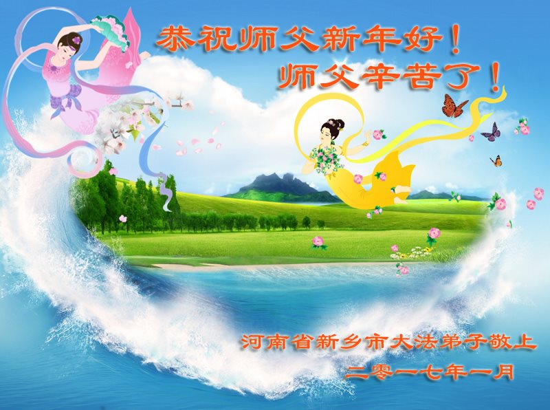 恭祝伟大慈悲的师尊新年快乐!谢谢师父慈悲救度!师父您辛苦了! 河南省濮阳地区全体大法弟子敬上 二零一七年一月二十五日 河南新乡一大法弟子恭祝师尊新年好!