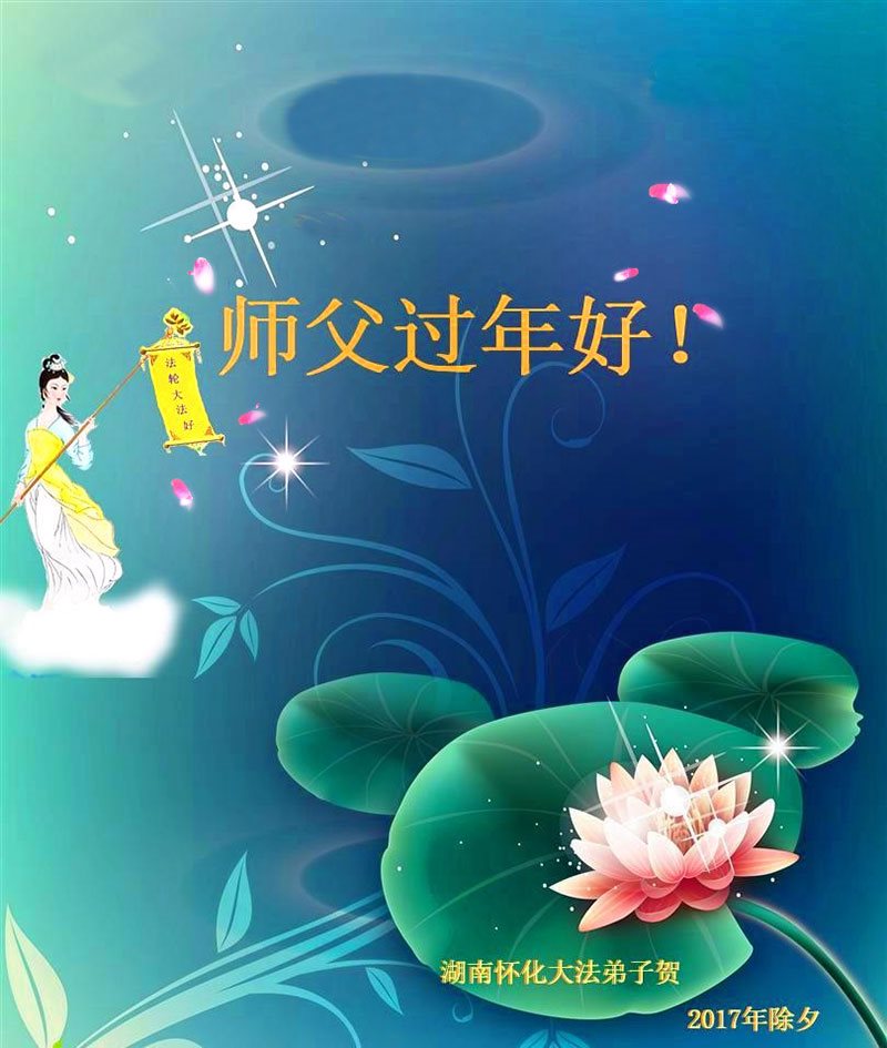 伟大的师父你好!湖南安仁县全体大法弟子给师父拜年,恭祝恩师新年好! 湖南益阳大法弟子恭祝慈悲伟大的师尊过年快乐!