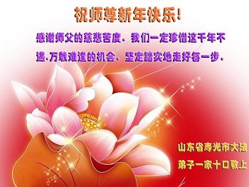 【明慧网二零一七年一月二十八日】 山东省潍坊市寿光市大法弟子一家十人恭祝师父新年快乐!