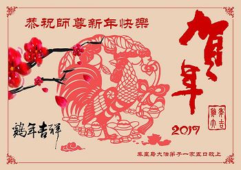 过年了!弟子倍加想念师父,师父您辛苦了!弟子及家人感恩师尊慈悲苦度!给师父拜年,三拜九叩跪谢师恩! 2017-1-25 河北省秦皇岛市海港区一学法小组全体大法弟子及家人叩拜恭祝师尊新年快乐!