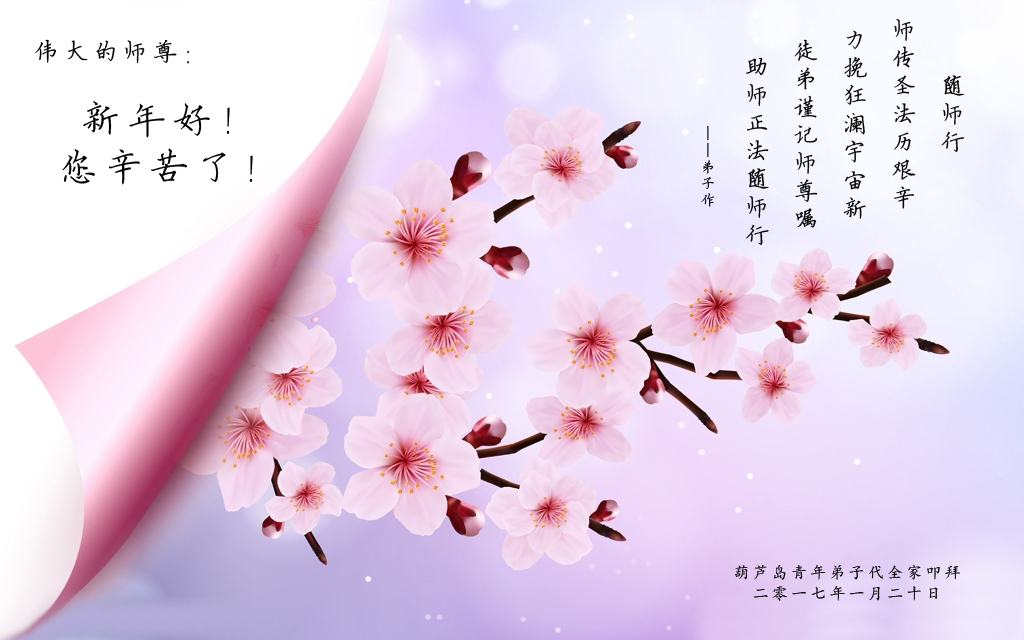【明慧网二零一七年一月二十八日】 辽宁葫芦岛青年大法弟子祝师父新年好!