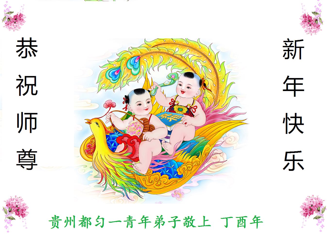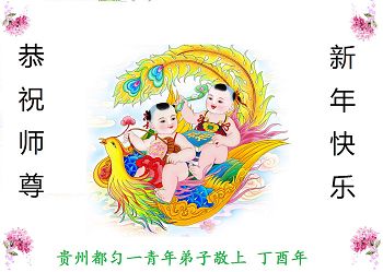 恭祝师尊新年快乐!感谢师尊慈悲度化,弟子一定尽力做好三件事,同时带好同修们。 贵州大法弟子恭祝师尊过年好!