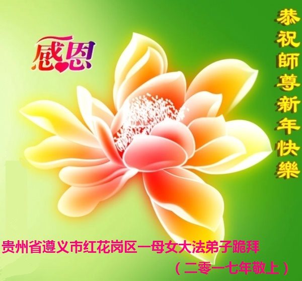 感谢师尊慈悲救度!弟子叩拜师尊! 贵州安顺大法弟子 贵州省遵义市红花岗区一学法小组大法弟子恭祝师尊新年快乐!