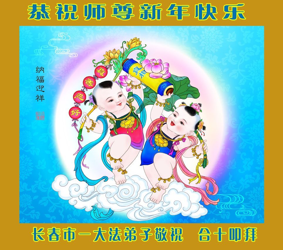 师父过年好!弟子们非常想念您!有缘我们得到大法,更有幸我们全家都参加过师父亲自讲法班,沐浴在您的佛光里,我们时刻感受到师父的慈悲看护,使我们才能坚定地走在回家的路上,我们一定学好法,做好三件事,完成使命!谢谢师父! 吉林省长春大法弟子及家人祝师父过年好!