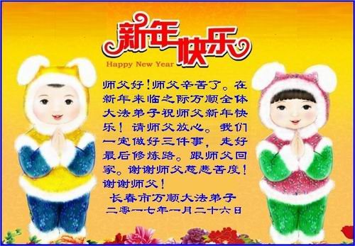 【明慧网二零一七年一月二十八日】 吉林省长春一大法弟子恭祝慈悲伟大的师尊过年好!