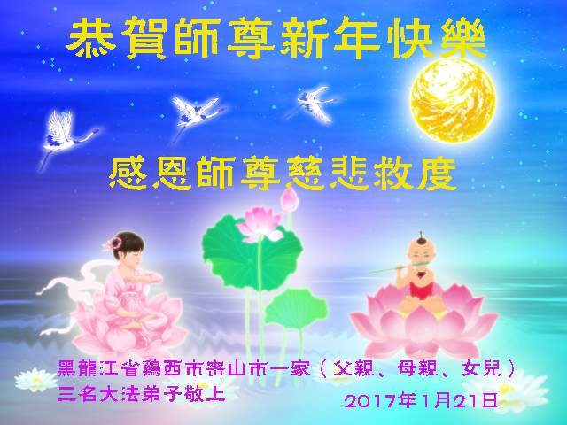 【明慧网二零一七年一月二十八日】 黑龙江省鸡西市五名大法弟子恭祝慈悲伟大的师尊新春快乐!