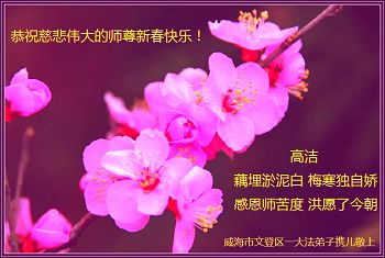 尊敬的师尊,您好! 我们是中国大陆大法弟子,在新的一年即将到来之际,我和我的全家给师尊拜年,师尊过年好! 山东大法弟子给恩师拜年!恭祝慈悲伟大的师尊过年好!