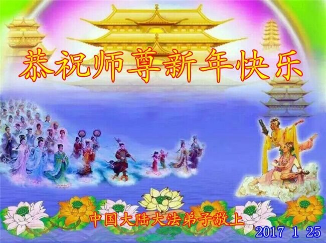 师父新年好! 师父辛苦了 我们一定精進实修 大陆大法弟子恭祝师父新年好!