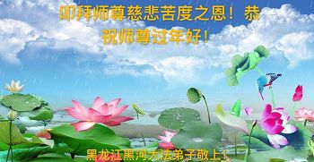 感恩师尊!师尊您好!师尊您辛苦了!恭祝师尊 过年好!我们一定听师尊的话,学好法,做好三件事,圆满随师还。 北京市丰台区一学法小组 连云港大法弟子恭祝师尊新年快乐!