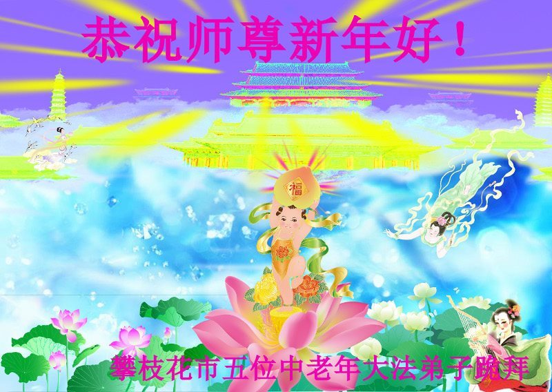 请师父放心!在新的一年里,我们全家一定以法为师,认真做好三件事,精進实修,完成大法弟子该做的事! 四川省攀枝花五位中老年大法弟子恭祝师尊新年好!