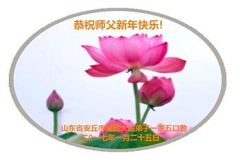 恭祝伟大慈悲的师父新年快乐! 弟子合十 叩拜 山东一大法弟子恭祝师尊新年好!