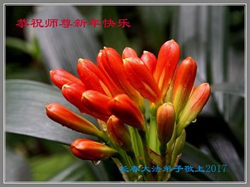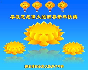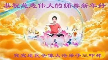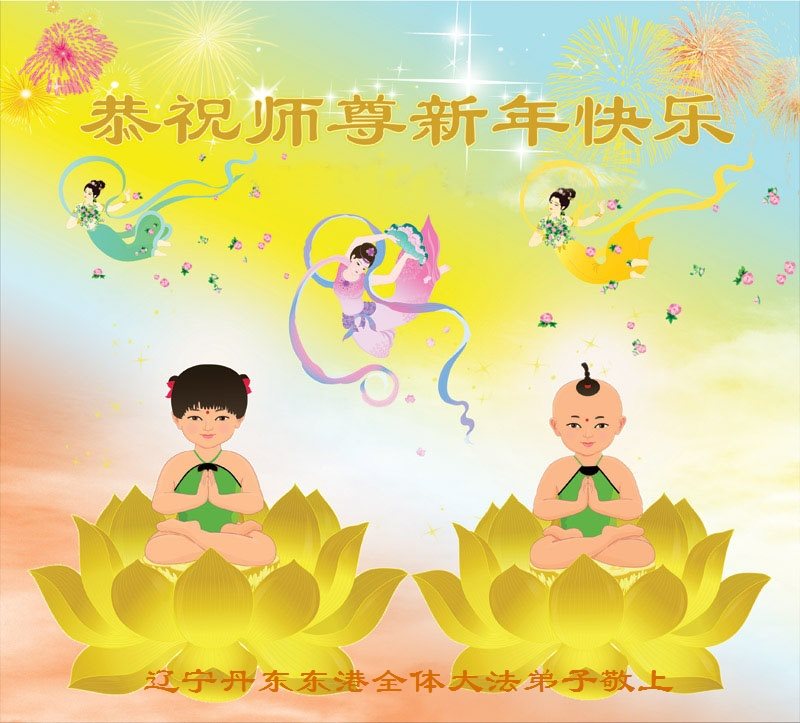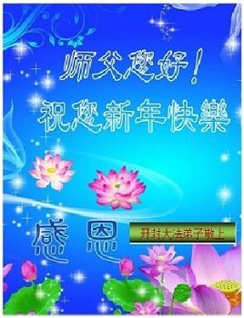 辽宁东港全体大法弟子恭祝伟大师尊新年快乐!师父新年好! 在新年到来之际,弟子万分想念伟大慈悲的师父!弟子叩拜伟大师尊!恭祝伟大师尊新年快乐! 师父,是您的无边法力与洪大慈悲和无私的给予才使天体、宇宙、大穹以至人类一切的一切得以存在至今!师父为众生为弟子操尽了心!师父的伟大慈悲与浩荡佛恩容贯天体、宇宙、大穹!仰望师恩,弟子用什么语言都表达不尽对伟大师尊的无限感恩!弟子唯有精進实修、抓紧救人来报答师恩。 辽宁东港全体大法弟子再次叩拜伟大师尊!再次恭祝伟大师尊新年快乐! 吉林省长春大法弟子恭祝师尊新年快乐!