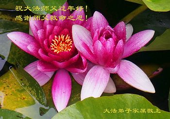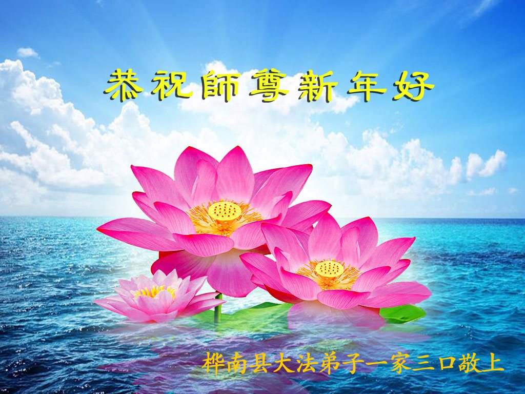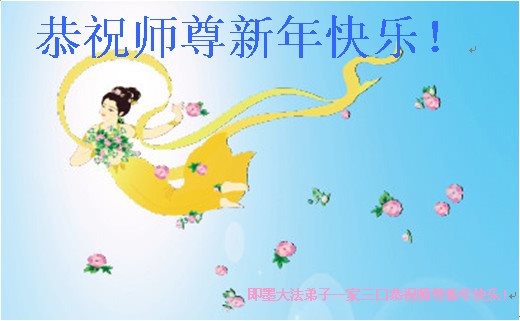 吉林省松原市母女大法弟子二人,代表两个学法小组同修给师父叩首了,慈悲伟大的师尊,您辛苦了,松原市大法弟子想念您,恭祝师尊新年好! 四川省南充市阆中市一大法弟子及家人恭祝师父新年快乐!