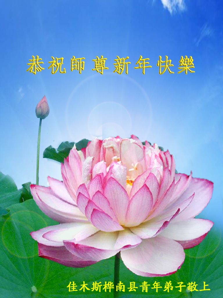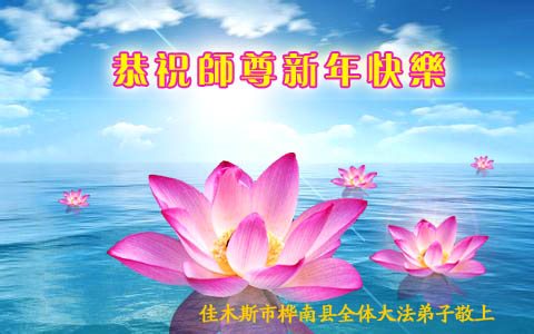 辞旧迎新,新的一年万象更新,大法弟子们在大法师父的教导下,按真、善、忍的法理做好人,使得家庭和睦,充满祥和幸福。一人得功全家受益,大法弟子家属也不同程度的在身体及其它方面受益,遇难呈祥、化险为夷!家中有大法弟子是幸运的,我们会常念“法轮大法好”,“真、善、忍”好,多谢大法师父。祝大法师父过年好! 黑龙江省佳木斯市桦南县全体大法弟子恭祝师尊新年快乐!
