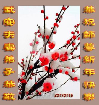 梅花吐艳迎新年,2017年新年到来之际,我们郫县大法弟子向慈悲伟大的师尊致以最崇高的敬意!师尊您好!师尊您辛苦了!弟子们想念您!期盼着您早日回国,期盼着能见到您! 河北省石家庄市井陉县大法弟子祝师父新春快乐!