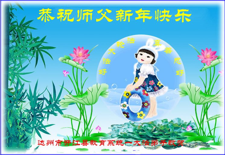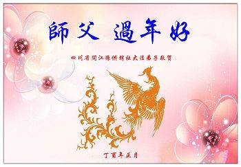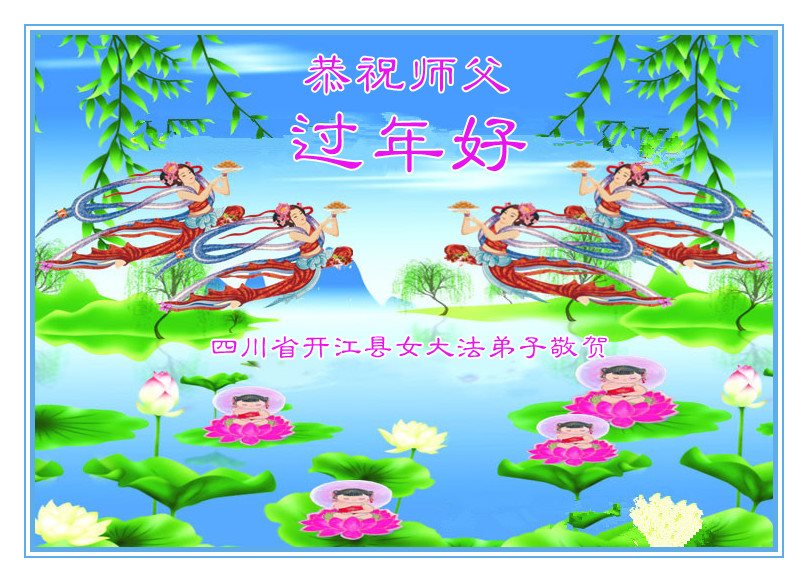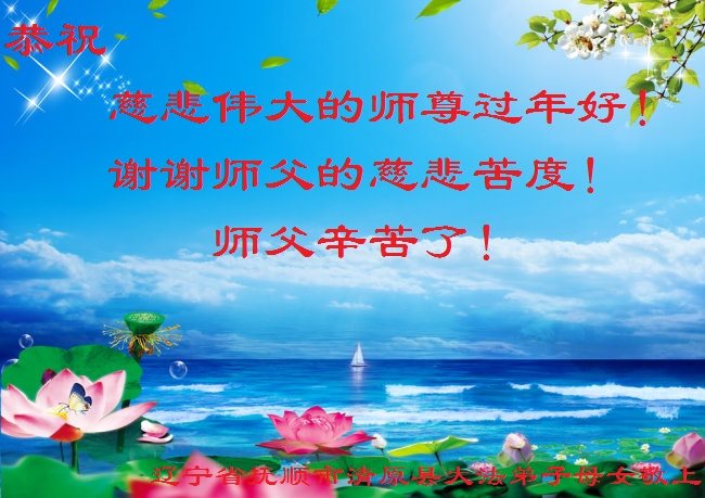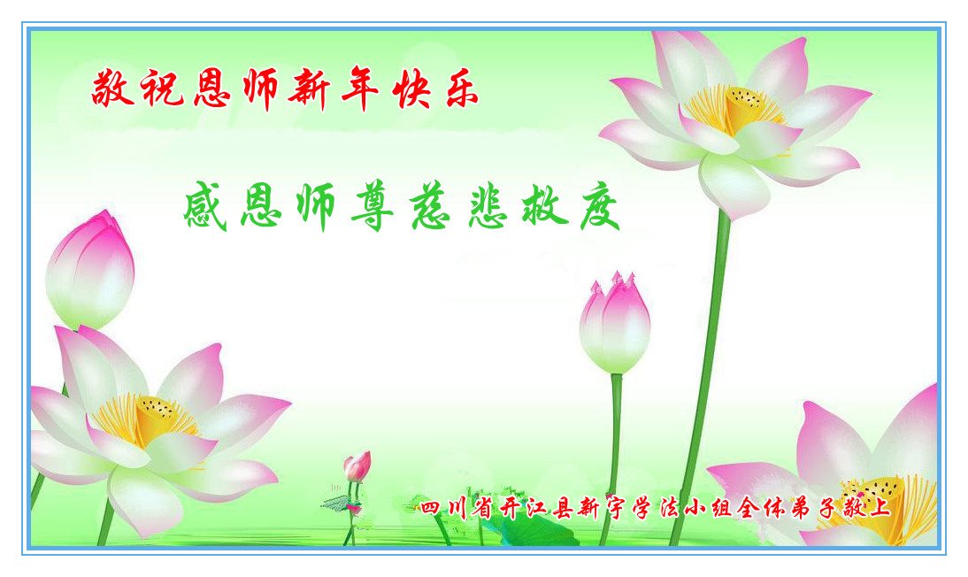 恭祝师尊新年快乐!感谢师尊的慈悲苦度!弟子们一定做好三件事,叩拜师尊!合十! 重庆市江北区苗儿石学法小组全体大法弟子恭祝师尊新年快乐!