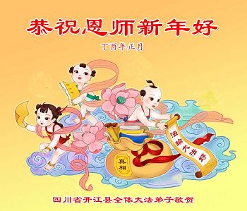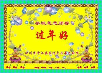 在新的一年里,弟子们继续比学比修,互相促進,互相扶持,精進实修,充分发挥师父赋予弟子们的智慧,做好三件事,加大讲真相的力度,多救人,让师父少一份操劳,多一份欣慰,请师父放心,我们会越做越好。圆满随师还! 四川省达州市开江县女大法弟子恭祝师父过年好!