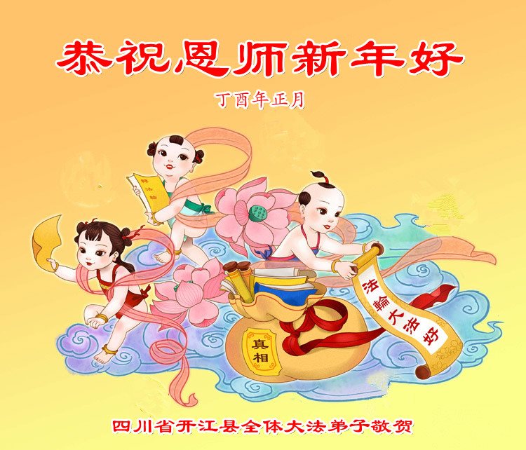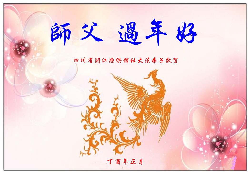 尊敬的师尊您好!二零一七年新年到了,在此借明慧一角河北涞源两个家庭学法小组二十名大法弟子和向慈悲伟大的师尊问好,师父辛苦了!弟子会更加精進,做好三件事,用行动谢师恩! 河北涞源大法弟子 2017年1月24日 四川省达州市开江县供销社大法弟子恭祝师父过年好!