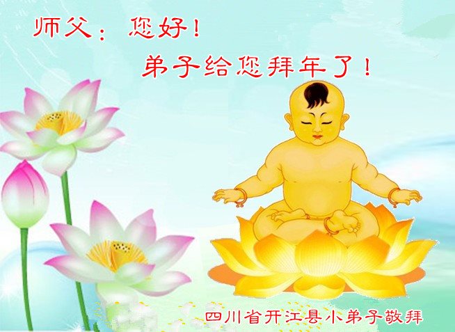 弟子用尽人间的语言也无法表达对师父的感恩之情,弟子只能跪拜师尊:恭祝慈悲伟大的师尊新年好! 四川成都市彭州大法弟子恭祝师尊新年快乐!