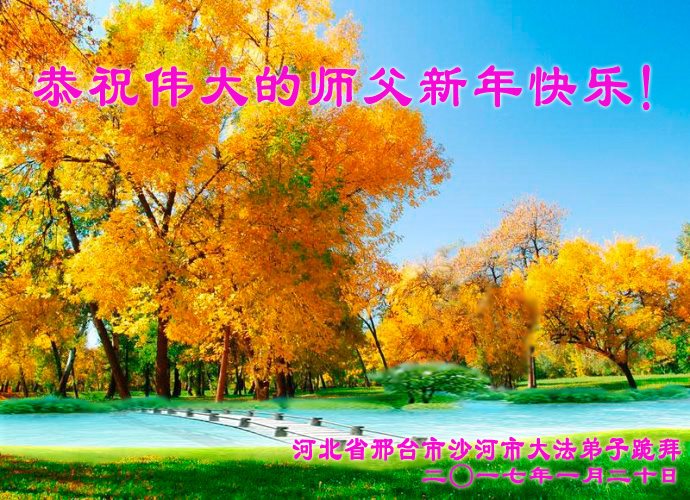 师父新年好!师父新年好!沙河大法弟子给您拜年啦!恭祝伟大的师尊新年快乐! 河北省邢台市沙河市大法弟子跪拜 山东省聊城市临清市农村大法弟子恭祝师尊新年好!新年快乐!