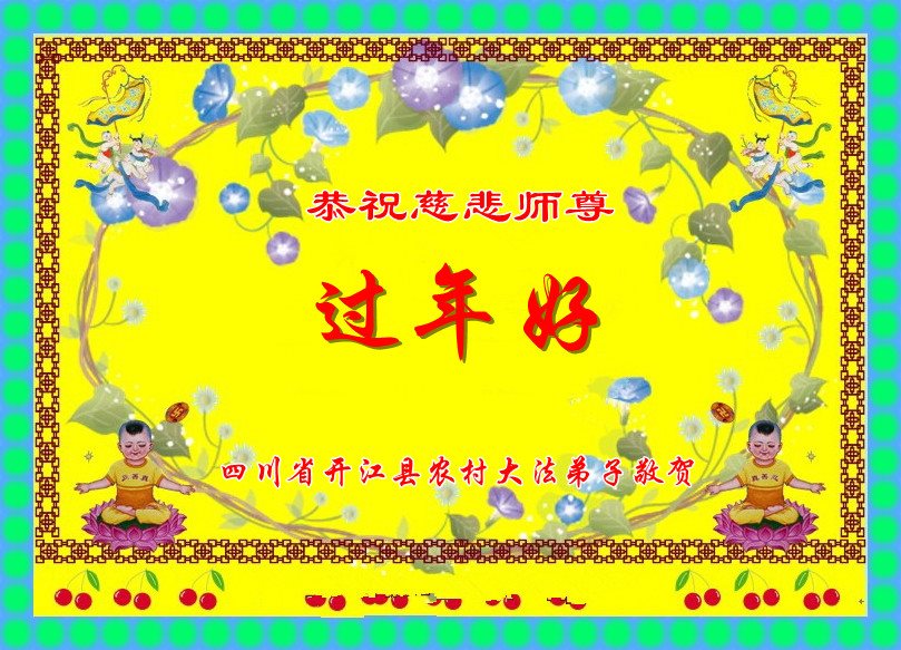 谢谢师父的慈悲苦度!师父辛苦了! 黑龙江省哈尔滨市阿城市大法弟子恭祝师尊过年好! 四川省达州市开江县全体大法弟子恭祝恩师新年好!