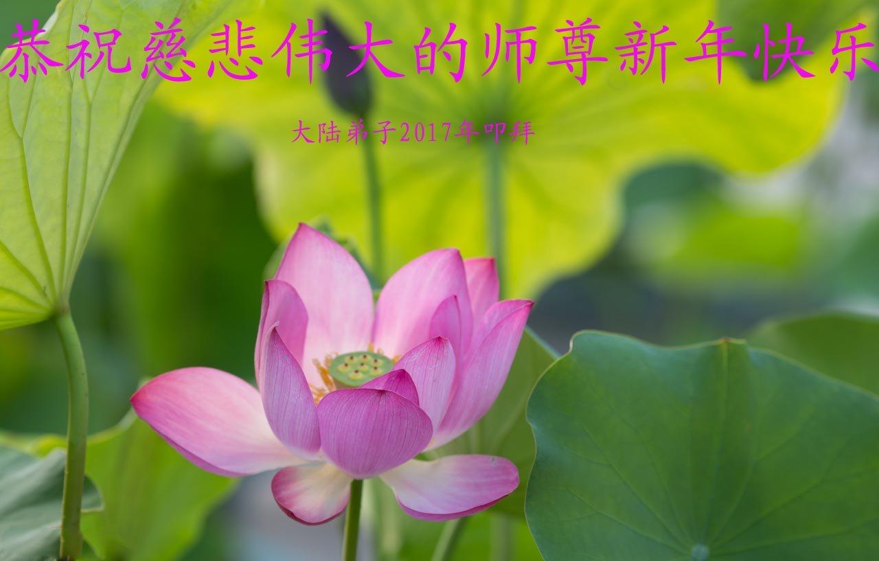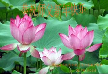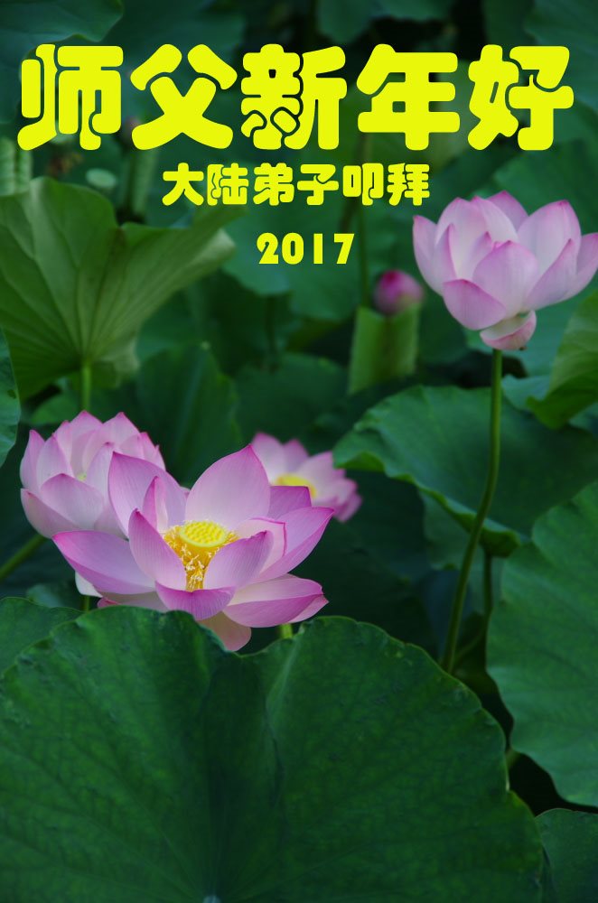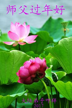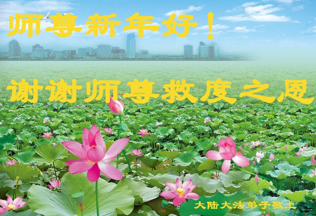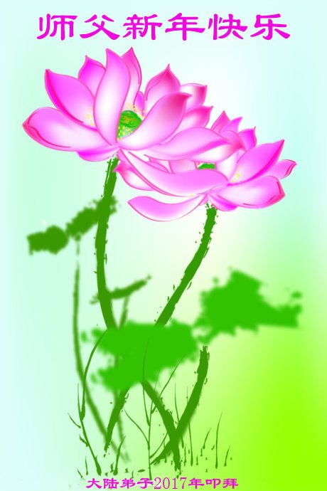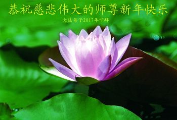 想念的师父!十七名大法弟子向师父问好!师父新年好!我们感谢师父慈悲苦度!不但给我们净化身体,使我们无病一身轻,沐浴在大法中,越活越年轻,生活在幸福中,每天都在做好三件事,多学法,多去人心,多救人,跟师父回家!弟子跪拜师父! 吉林省长春大法弟子 山东一高校家属院大法弟子给慈悲伟大的师父拜年!