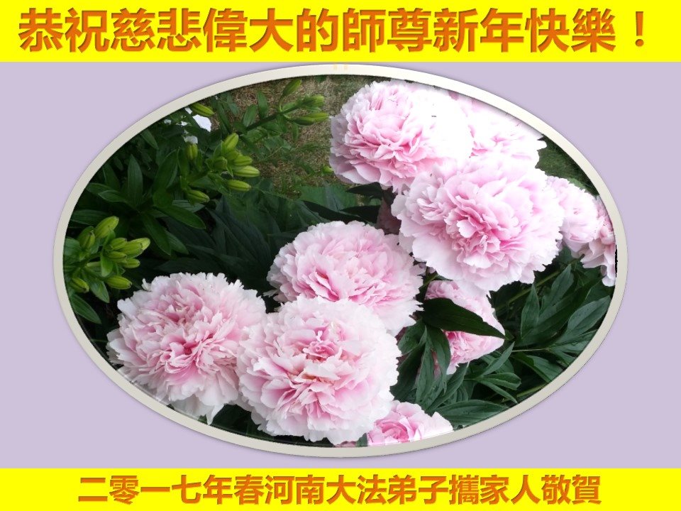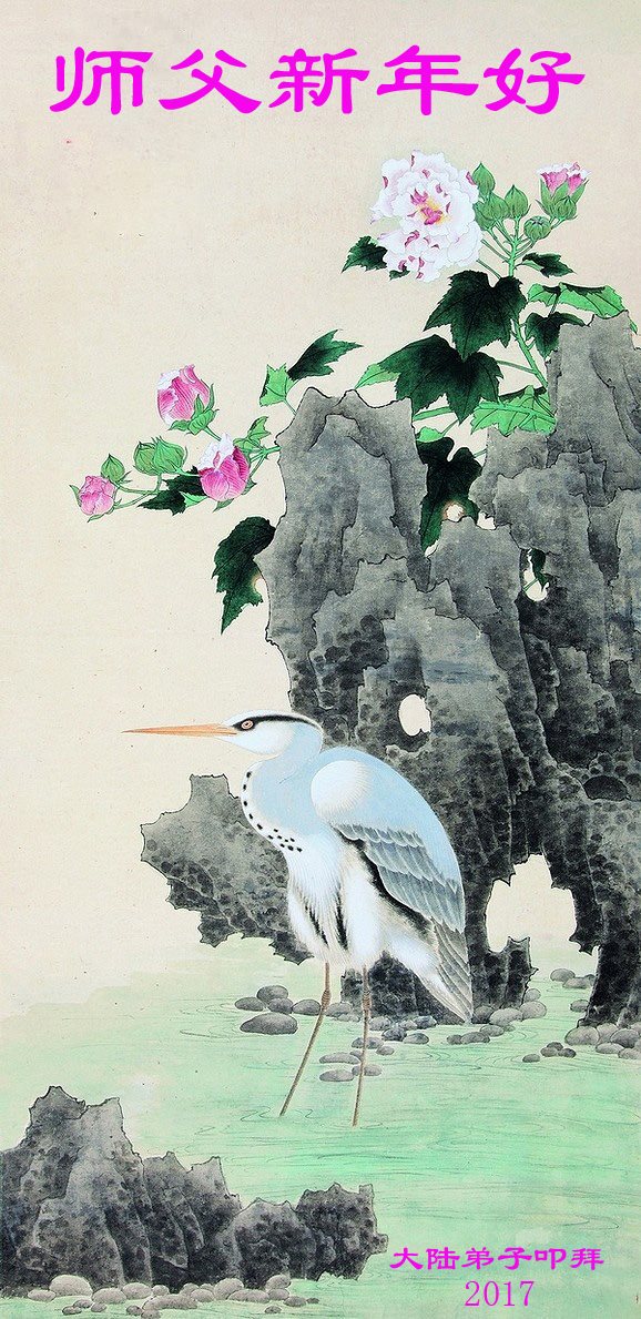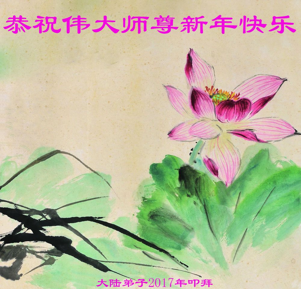 湖北省通城县全体大法弟子向师父拜年!师父新年好!师父为了拯救宇宙大穹,为了大法弟子都能够修好、修成,为了世人的得救,一再延长结束的时间,几乎耗尽了自己的一切。用尽人类的语言也表达不了我们对慈悲伟大师父的感恩!师父盼望我们大法弟子都能够真正修好自己,多救人,所以我们每个大法弟子都要从自身做起,多学法向内找,努力修好自己,同时要圆容配合,协调一致,形成更强的整体,做好大法弟子应该做好的三件事,精進不停,让师尊少一份操劳,多一份欣慰! 恭祝师父过年好!新年快乐!弟子表达感恩! 二零一七年到来之际,在新的一年里,我要更加努力做好三件事,讲好真相多救人,时刻不忘记修好自己,去除各种人心与执着,珍惜师父用巨大的承受延续来的时间。我们弟子碰到了这难遇的万古机缘,兑现来世的誓约,回报师尊救度之恩! 湖北通城县老年大法弟子敬上 湖北通城县青年大法弟子恭祝师尊新年快乐!向慈悲伟大的师尊拜年!弟子一定要多学法修好自己,做好三件事,走好以后的路,精進不停,直至功成圆满,跟师父回家!在此作诗一首,以谢师恩!以明心志! 得法回天 人世小憩别留恋 人生短暂如住店 生生轮回为今朝 得法回天是本愿 为得大法来世间 天国亲人望穿眼 为救众生不言苦 万古机缘在眼前 身在红尘心如莲 忍苦精進意志坚 不辱使命兑誓约 果正莲成回家园 河北省邯郸大法弟子一家恭祝师尊过年好!