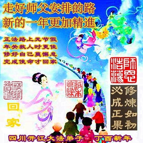 在这浩瀚洪穹更新、无量众生感恩得救之际,我们迎来了金鸡报晓,曙光在即的时刻。家乡的弟子更加期盼慈悲伟大的师尊回家乡。在这正法结束的有限时间里,我们更加勇猛精進,修好自己,做好三件事。跟随慈悲伟大的师尊回家园。 弟子跪拜合十 辽宁抚顺茨沟大法弟子祝贺师父新年好!