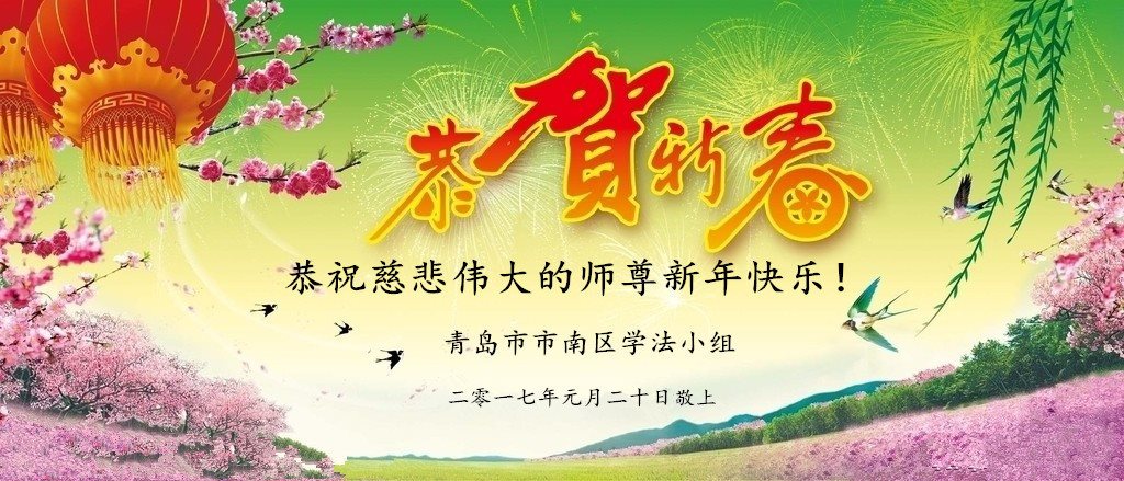 恭祝慈悲伟大的师父:新年快乐! 山东省聊城市全体大法弟子跪拜。 辽宁抚顺一学法小组大法弟子恭祝慈悲伟大的师尊过年好!