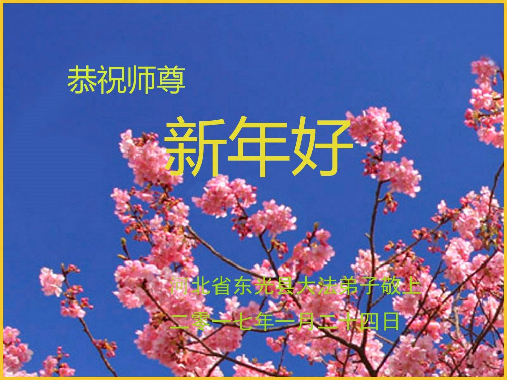 我夫妻无法用语言表达师父的慈悲呵护与点悟,只有听师父的话,做好三件事,用各种方式救度众生。 山东邹城岗山大法弟子恭祝师尊新年快乐!